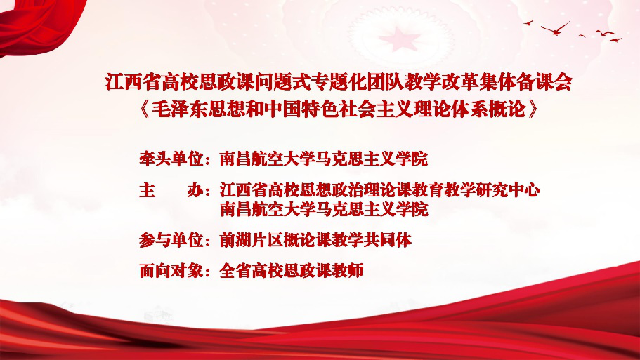 5月8日下午,南昌航空大学澳门十大电子正规游戏网站组织省内高校思政课教师开展线上集体备课,备课主题为《毛泽东思想和中国特色社会主义理论体系概论》课“问题式专题化”教学展示。