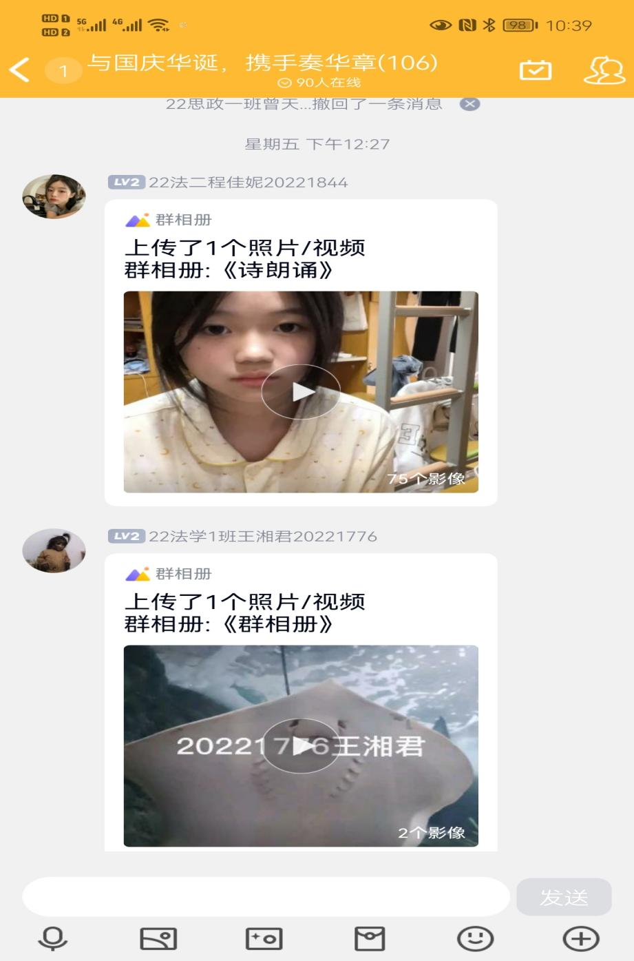随后在9月30日,澳门十大电子官网举办线上“与国庆华诞,携手奏华章”国庆祝福活动,以为祖国唱一首赞歌和运用诗朗诵的方式来进行。活动期间,学生们热情高涨,学生会工作人员收集到同学们纷纷发来的祝福视频。大家能够在诗词和歌曲的维度中体会祖国的繁荣昌盛和一路走来的艰辛。
