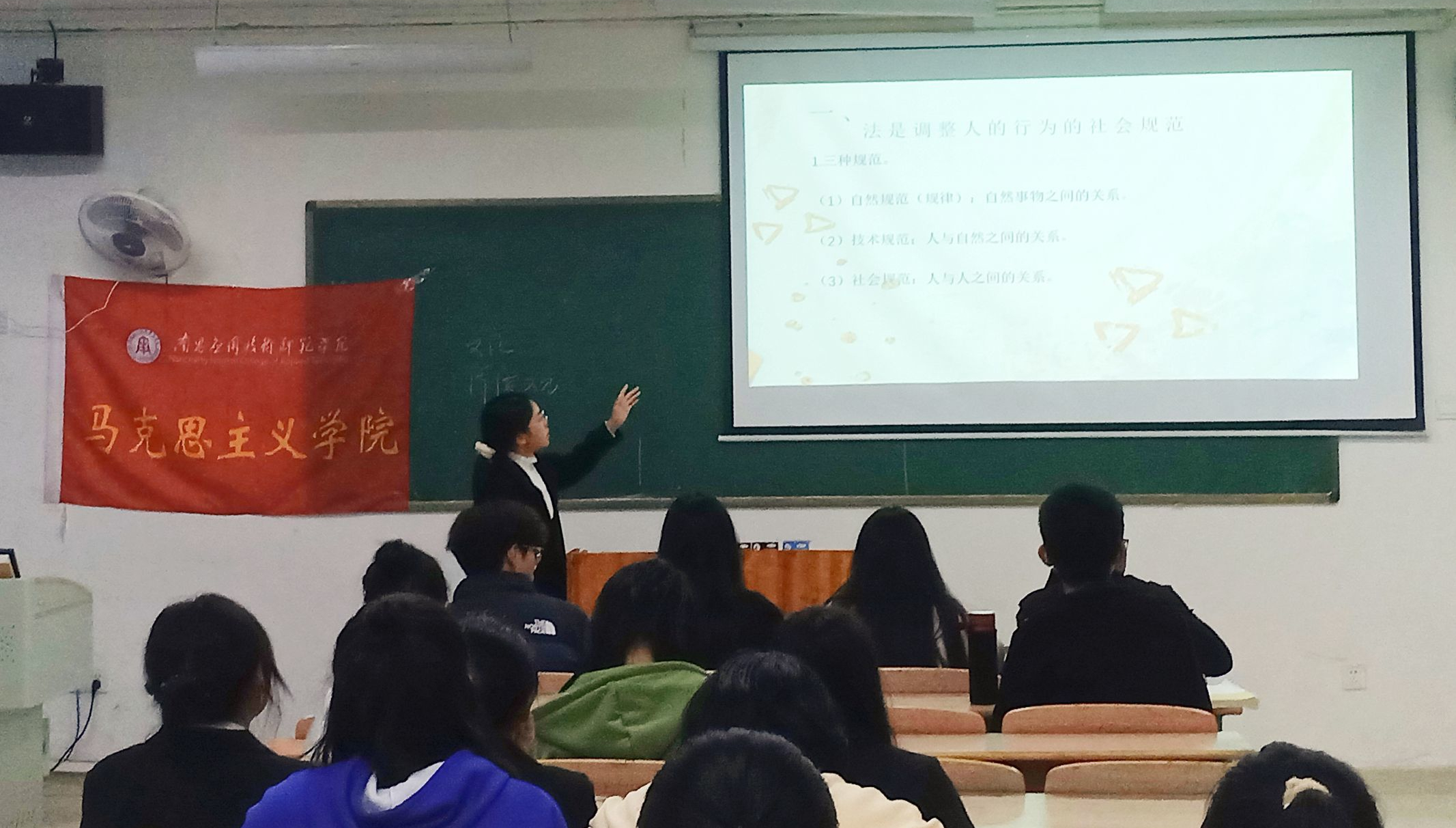 宣讲人首先用一些基本法律知识与同学们进行了交流互动,再向同学们讲解了法律在生活中的作用。接着,理论联系实际情况,向同学们讲解了偷外卖、偷快递、打架斗殴的后果,以及诚信考试的法律法规;重点介绍了大学生应该如何遵纪守法、远离不良行为一些基本方法和策略;最后,向同学们介绍了如何保护自己的合法权益,具有很强的针对性和实用性。