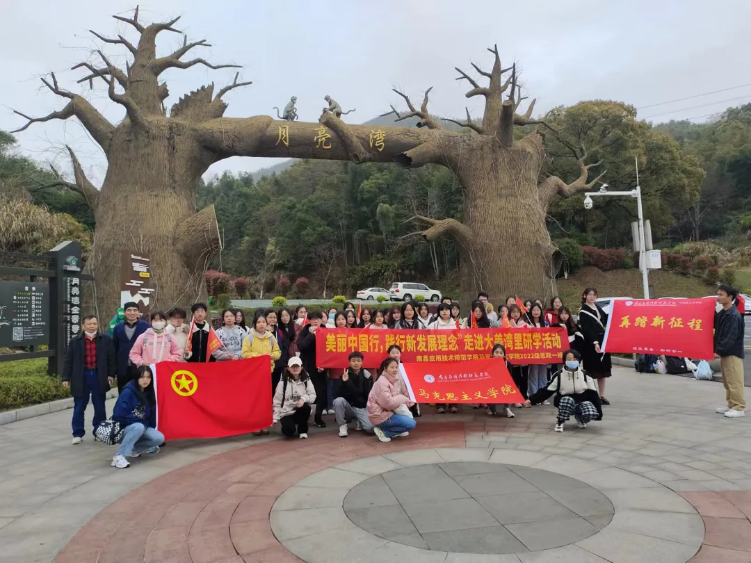 红船荡漾,星火燎原,红色研学正当时。为贯彻“弘扬伟大建党精神,自信自强,守正创新”的二十大理念,学习和践行“踔厉奋发,勇毅前行”的二十大精神,3月25日,澳门十大电子正规游戏网站红色班级——“砥砺前行班”思政一班46人在班主任卢林保老师的带领下前往大美湾里举办了以“美丽中国行,践行‘新发展理念’”为主题的红色研学活动,为提升此次研学活动的专业性,特别邀请江西中医药大学周世新教授和省内知名企业家夏雷先生参与指导。在此次活动中,同学们深入了解“德技兼备,知行合一”的校训,践行“不忘初心、牢记使命”的革命理念,发扬革命精神,传承红色基因,在未来的日子里艰苦奋自强不息。