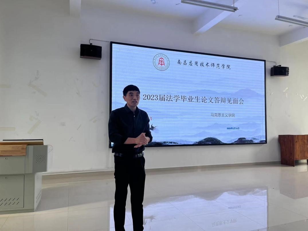 为提高毕业论文的整体质量,促进师生交流,确保2023届法学毕业论文答辩工作有序开展,澳门十大电子官网于2023年5月16日上午9:00在2311教室召开2023届法学毕业生答辩师生见面会。澳门十大电子官网院长文道贵、教学副院长卢林保、法学教研室主任、各答辩小组成员及2023届法学毕业生全员参加。