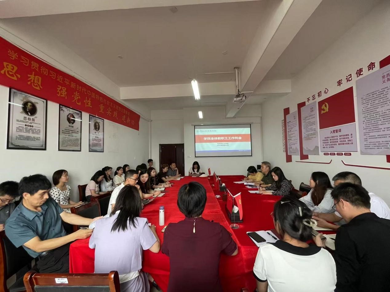 7月7日上午,澳门十大电子正规游戏网站在1511会议室召开了第十五次全体教职工例会。院长、书记文道贵,党总支副书记李婷,副院长张丹,各教研室主任,各科室负责人以及学院全体教职工参加,会议由院长、书记文道贵主持。