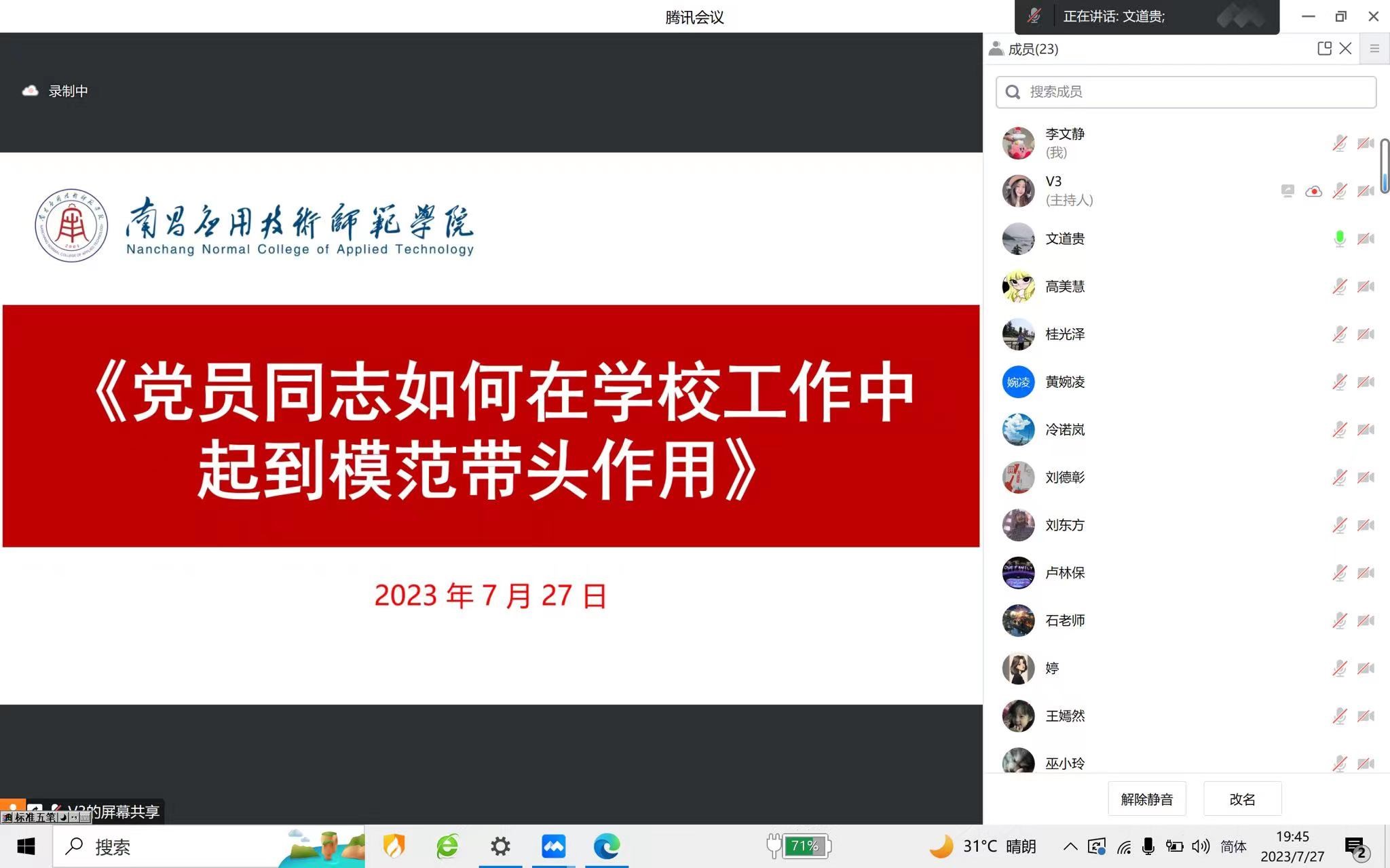 为激励引导全院广大党员、干部、群众坚定不移听党话、感党恩、跟党走,凝心聚力、真抓实干推动学院高质量发展,澳门十大电子官网于2023年7月27日开展“学风践悟 正风提能”主题教育暨2023党员学习日活动,澳门十大电子正规游戏网站党总支书记、院长文道贵,党总支副书记李婷,副院长张丹及全体教师党员参与会议。