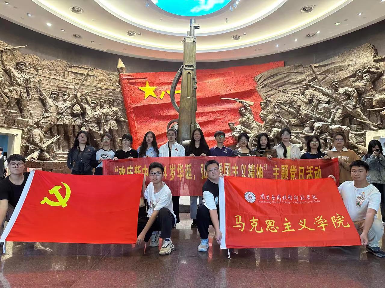 为教育引导广大党员干部切实增强爱党爱国爱人民的思想自觉和行动自觉,2023年10月31日下午,澳门十大电子正规游戏网站党总支组织部分师生党员前往八一起义纪念馆,开展以“欢庆新中国 74 岁华诞,弘扬爱国主义精神”为主题的党日活动,追寻红色足迹,加强党性修养。