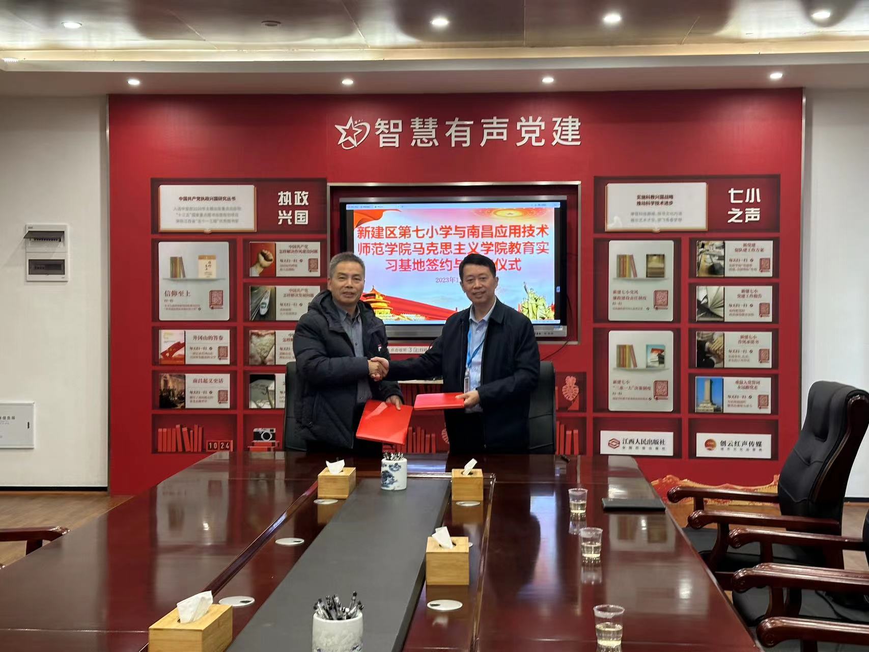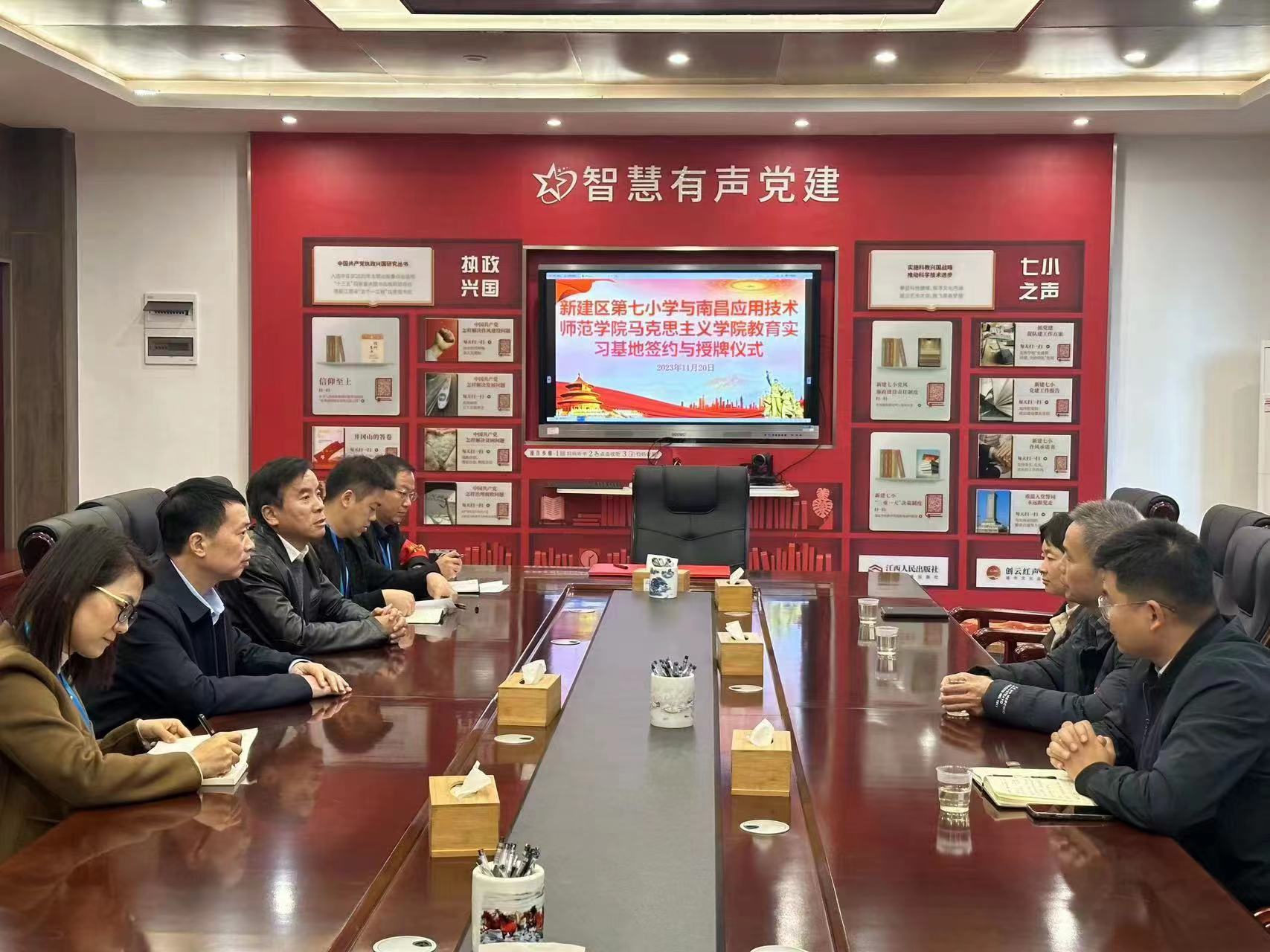 新建区第七小学校长邓必高介绍了新建七小在教学、党建等多个方面均被列为新建区“示范点”的优异成绩,并表示学校高度重视思政教育,期待与高校建立教育实习基地后,在思政师资等方面相互交流、相互学习、互相成长,长期合作,实现双赢。
