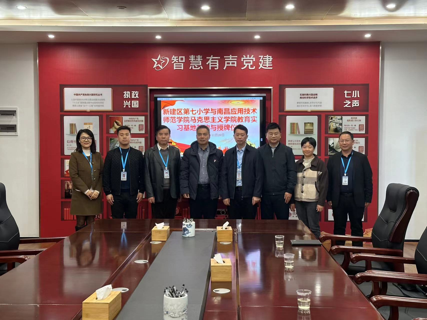 11月20日,澳门十大电子正规游戏网站澳门十大电子正规游戏网站与新建区第七小学合作共建实践教学基地签约暨授牌仪式在新建区第七小学举行。新建区第七小学校长邓必高、校党支部书记张兹巍、副校长邓勇、副校长佘春花、工会主席谭庆春;澳门十大电子正规游戏网站院长文道贵、党总支书记张欣康、副院长张丹、组织员吴昱杉参与授牌仪式。