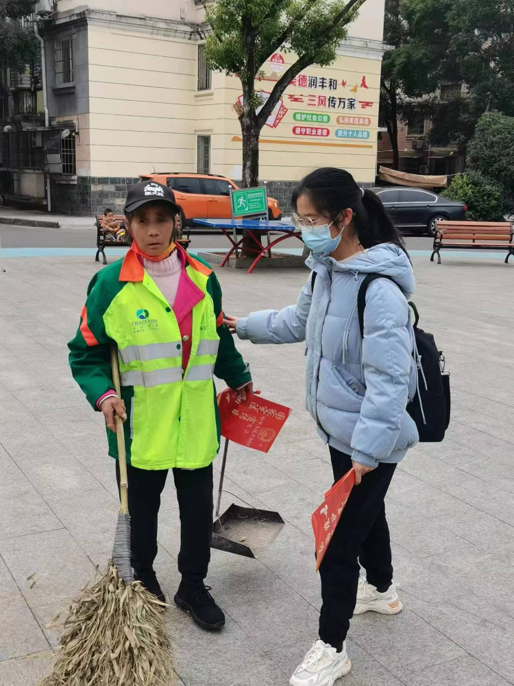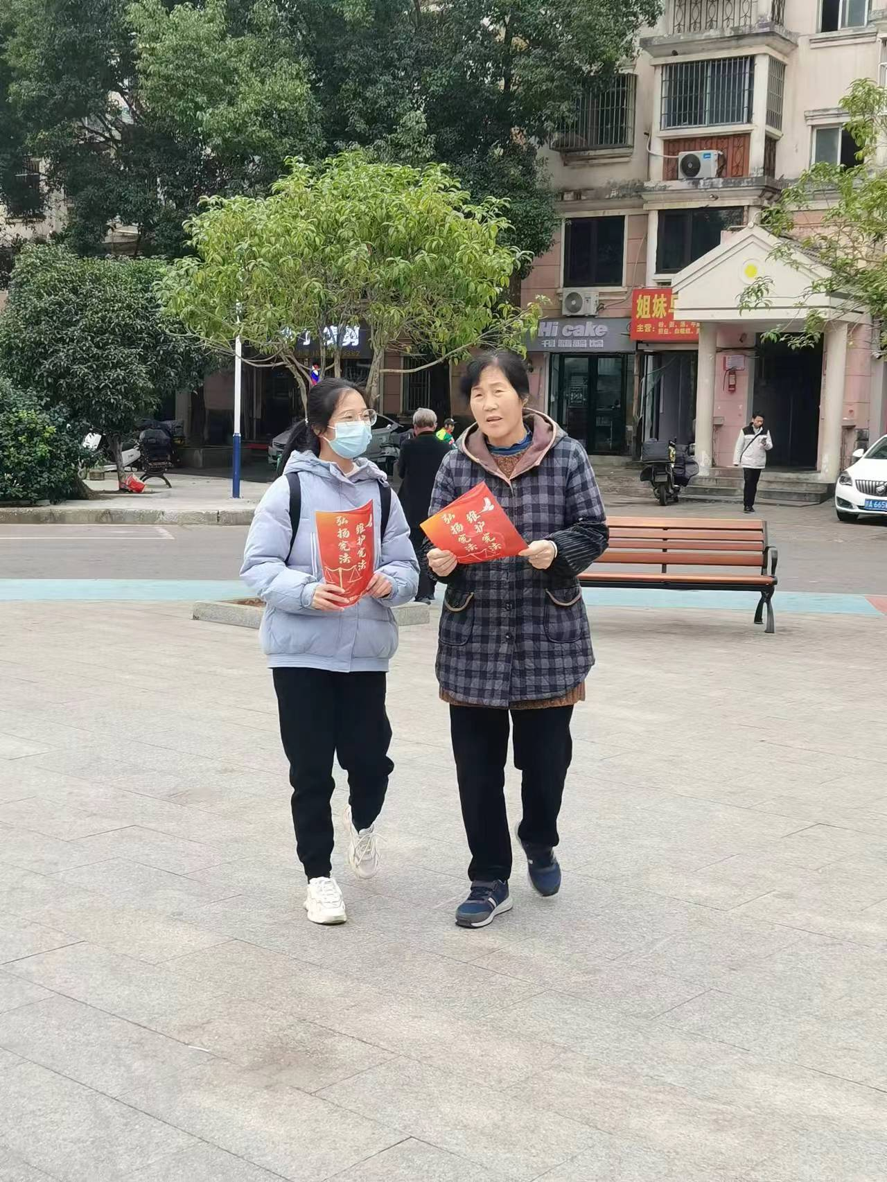 法治社区,宪在行动。老师带领同学们走出校门前往丰和花园社区小广场,以发布宪法传单和问答互动环节的形式为社区居民宣传宪法,提高对宪法的了解,对同学们也有一定程度的锻炼。
