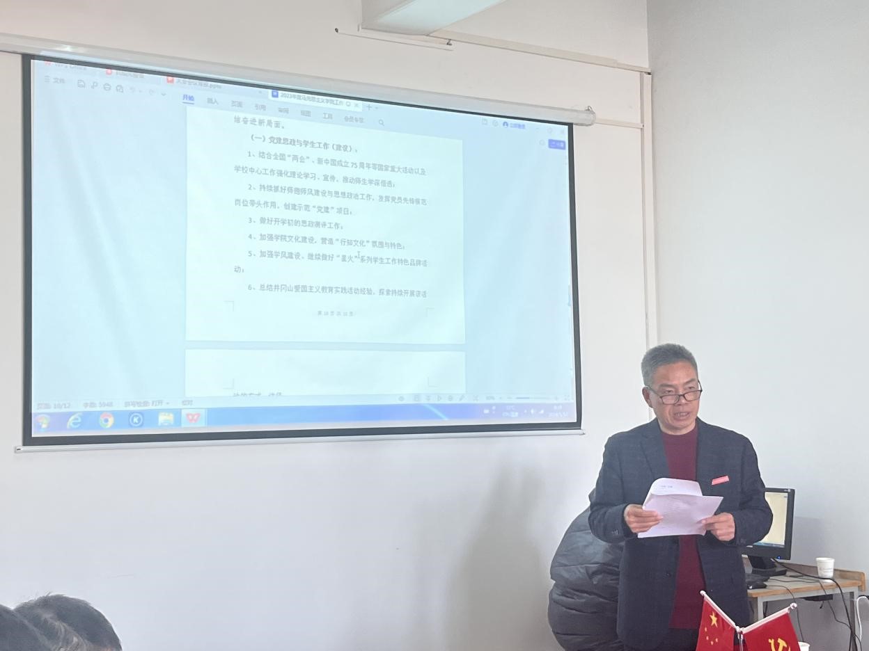 会上,院长文道贵再次带领大家学习了《普通高等学校澳门十大电子正规游戏网站建设标准(2023年版)》。《标准》分“组织领导与管理”“思政课教学”“教师队伍建设”“马克思主义理论学科建设”“社会服务与社会影响”以及“党的建设与思想政治工作”等部分。文院长对内容进行了详细解读,并结合《标准》、学院实际安排部署了学院建设相关工作。