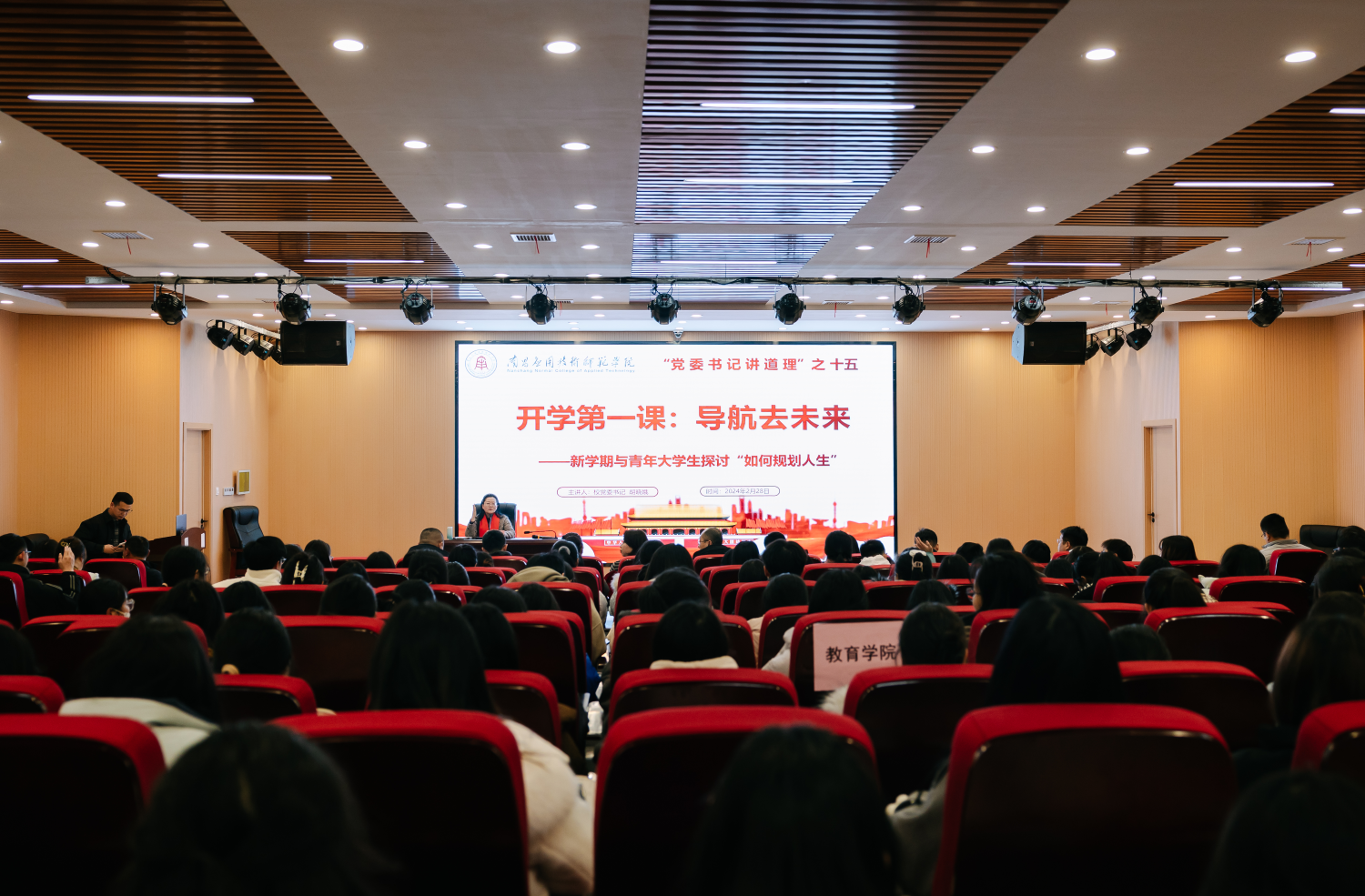 为推动时代新人铸魂工程落实落细,重点聚焦学生关注的主要问题、思想困惑和实际需求,为同学们解疑释惑、悉心指导、启智润心。2月28日晚,党委书记胡晓娥以兼职班主任身份,在教学楼2312学术报告厅为澳门十大电子正规游戏网站联系班级2022级思想政治教育(师范)专业3班全体学生及学院各级学生代表开展“党委书记讲道理”第十五讲《开学第一课:导航去未来--新学期与联系班级学生探讨如何规划人生》的精彩讲座。