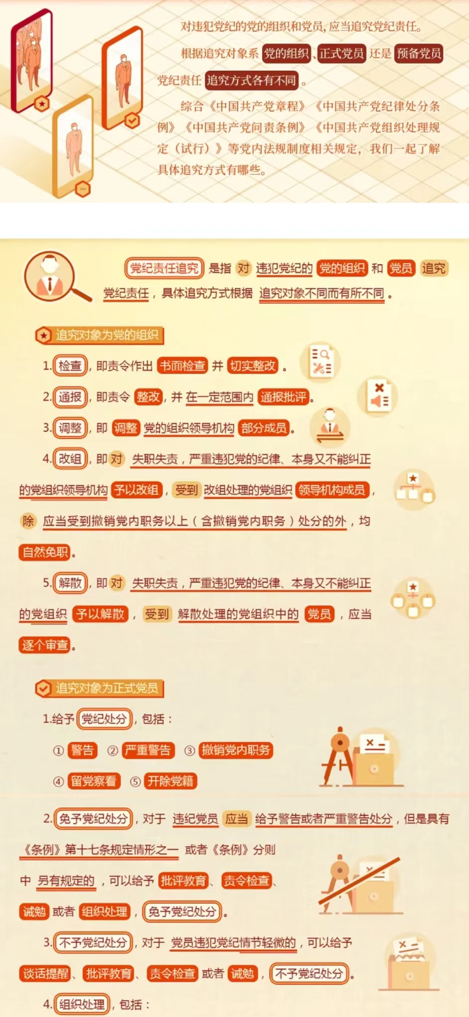 base 首页栏目 学院概况 教学管理 教师教学 学科专业 党建活动 学团建设 招生就业 先进典型 专题专栏 媒体聚焦 文件下载 您现在的位置是:首页 > base > 专题专栏 党纪学习教育|党纪责任追究对象方式一览 管理员2024-05-015837 上一篇 党纪学习教育|第10课对违法犯罪党员的处分规定 下一篇 党纪学习教育第9课:《条例》修订重点条文解读要清楚