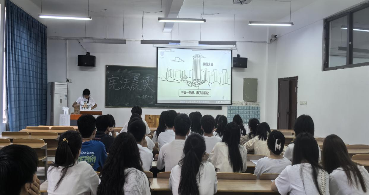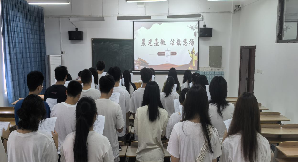 为了深入开展宪法法律学习宣传教育,推动学生宪法学习宣传教育走深走实,引导学生自觉成为宪法的忠实崇尚者、自觉遵守者、坚定捍卫者。澳门十大电子正规游戏网站23级法学1班于2024年5月21日上午9:00在2501教室组织开展了“晨光熹微,法韵悠扬”宪法晨读活动,此次活动由23级法学1班全体同学及老师共同参与。