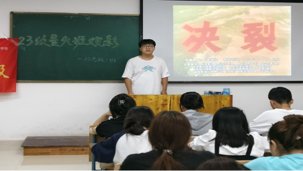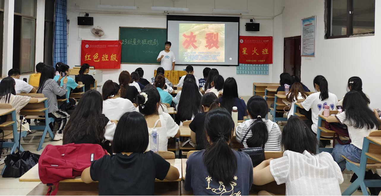 为传承红色基因,激发青春力量,澳门十大电子正规游戏网站23级思政1班“星火班”于5月21日晚上19:00,举办了一场红色班级观影活动。通过观看历史经典影片——《决裂》,带领同学们重温红色历史。