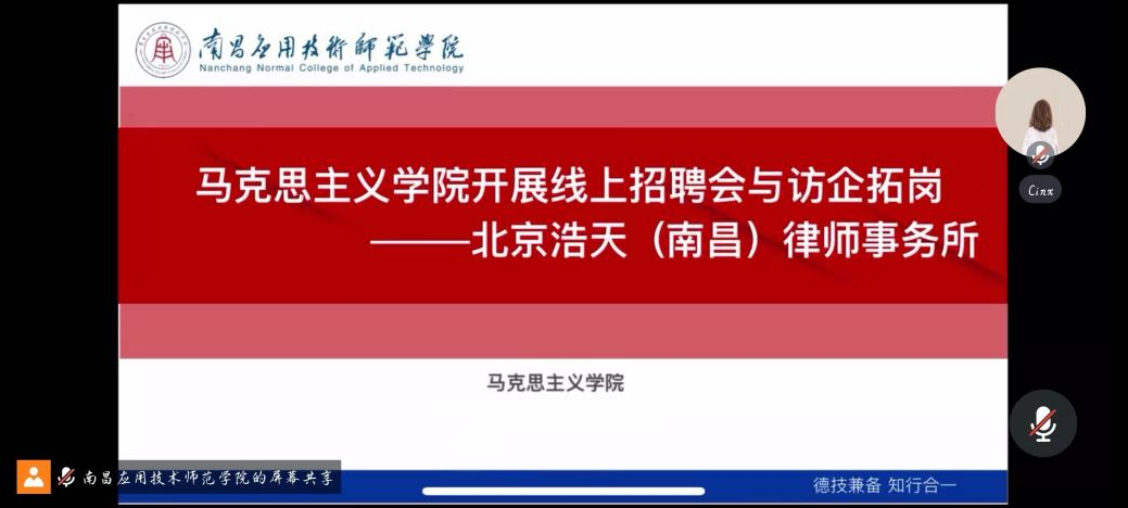 为了畅通毕业生与用人单位之间的沟通渠道,助力毕业生实现高质量就业,澳门十大电子正规游戏网站于2024年6月26日举办了一场线上招聘会,邀请了北京浩天(南昌)律师事务所、南昌正维空间设计有限公司参加此次招聘会。此次招聘会旨在为学生提供更多的就业机会,同时帮助企业发掘优秀人才,促进双方的共赢发展。澳门十大电子正规游戏网站党总支书记张欣康、就业专员朱文清、毕业班辅导员和部分毕业生参加了会议。