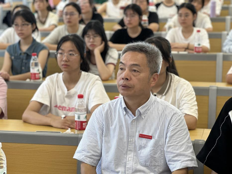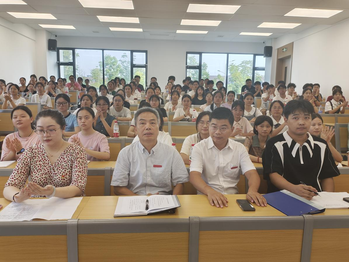 文院长从“大学的使命”、“五育融合”、“该怎么度过大学”三个方面为新生作讲解。他首先强调了大学“人才培养、社会服务、科学研究、文化传承、国际交流与合作”五个职能,以生动形象的语言让同学们明白自己身为大学生的使命。