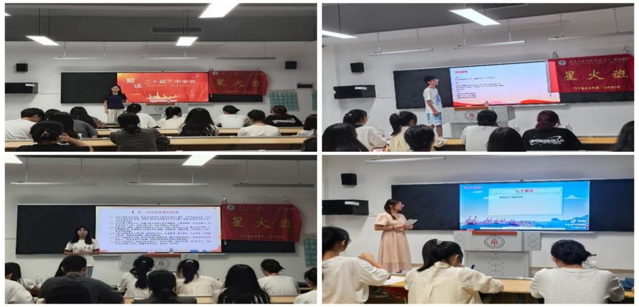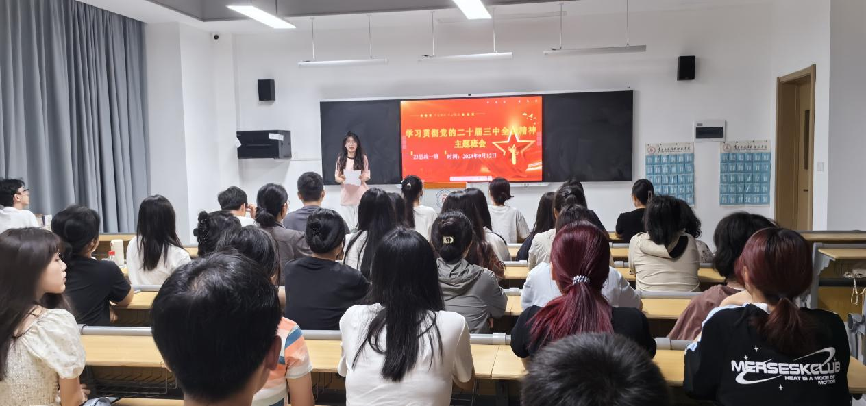 最后,郯良星同学对主题班会进行了总结,她鼓励大家要将党的二十届三中全会精神内化于心,外化于形,把自己的理想同祖国的发展需要紧密结合。此次班会的成功举办,不仅加深了同学们对党的二十届三中全会精神的理解和认识,也激发了大家投身新时代中国特色社会主义事业的热情和信心。同学们纷纷表示,将以此次班会为契机,进一步加强学习、锤炼本领、勇于担当、积极作为,为实现中华民族伟大复兴的中国梦贡献自己的青春力量。