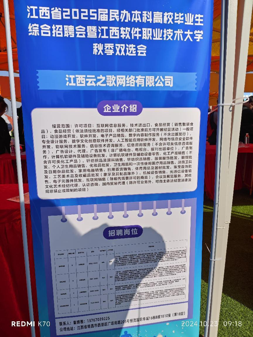 为进一步加强校企合作,拓宽毕业生就业渠道,提升人才培养质量,实现更全面更高质量就业。10月23日上午,澳门十大电子正规游戏网站就业专员朱文清,前往江西软件职业技术大学招聘会现场进行访企拓岗工作。