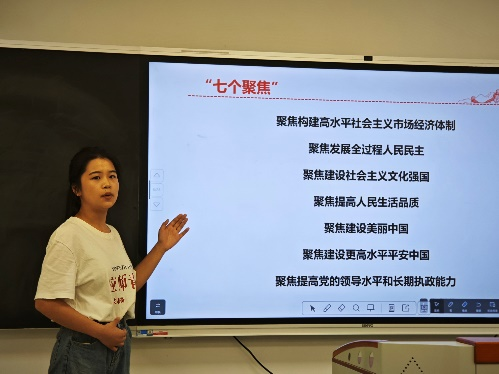 此次宣讲从“二十届三中全会内容了解”“七个聚焦之文化强国”“七个聚焦之提高人民生活品质”“以奋发有为的姿态谱写新时代篇章”四个部分展开讲解。戴已晨同学从多元角度切入,紧密结合实际,以鲜明的主题、生动的案例,阐述了全会精神对青年学生未来发展的重要指导作用。她通过对井冈山爱国主义实践教学活动、南昌新四军军部旧址陈列馆参观互动、新建县第五小学宣讲活动等实践经历的回忆与分享,为同学们展现澳门十大电子正规游戏网站在文化强国及思政课堂创新实践上的努力与贡献。