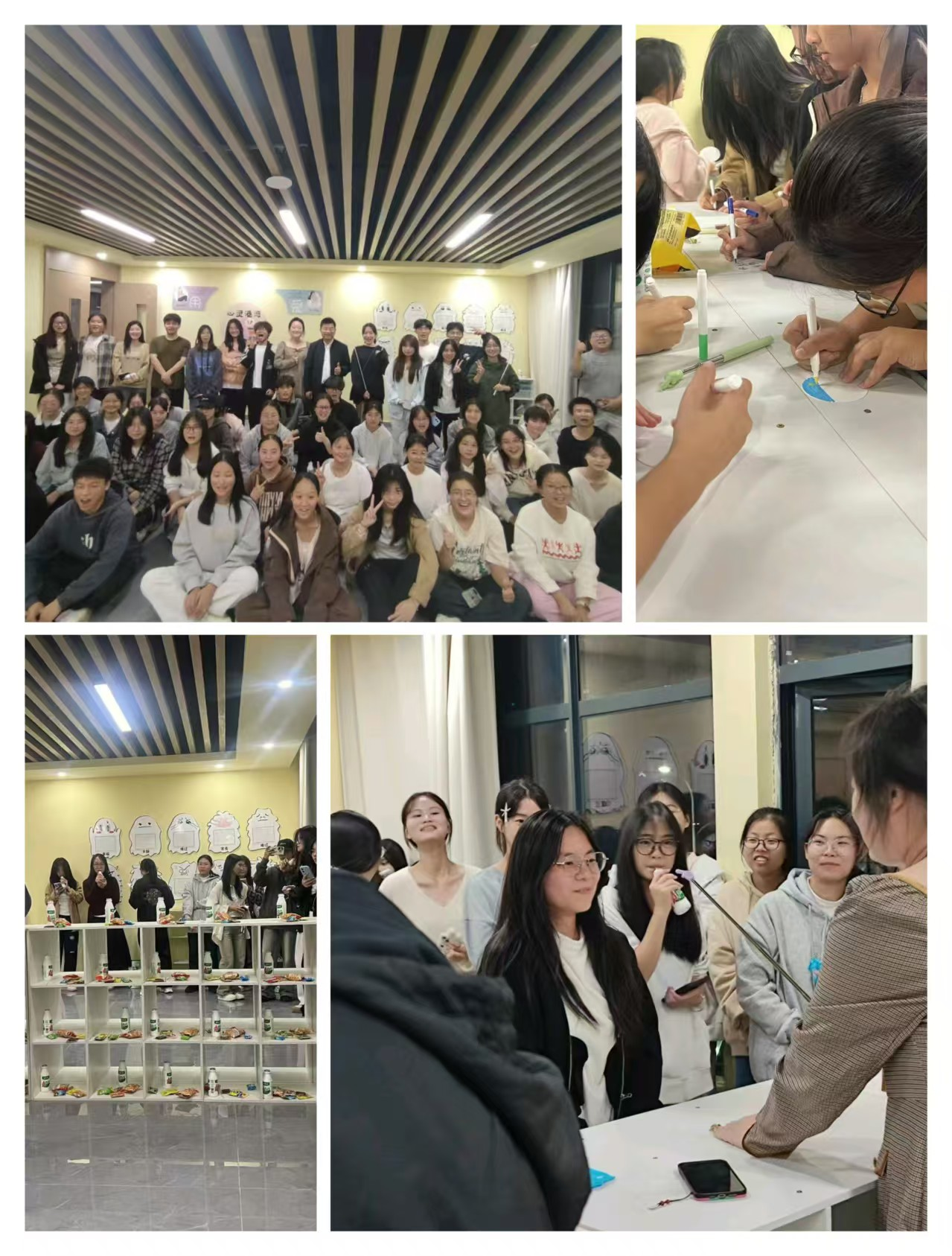 落成仪式上,学生们通过一系列互动活动,增进了彼此之间的了解与情感交流。在“心灵共鸣”游戏环节,同学们跟随指挥,在欢快的音乐中传递正能量;“数字寻宝”则让参与者在紧张刺激的氛围里寻找幸运号码,收获精美礼品;而“歌词传情”和“真情共写”活动更让大家敞开心扉,分享内心真实感受,现场欢声笑语不断,气氛热烈。