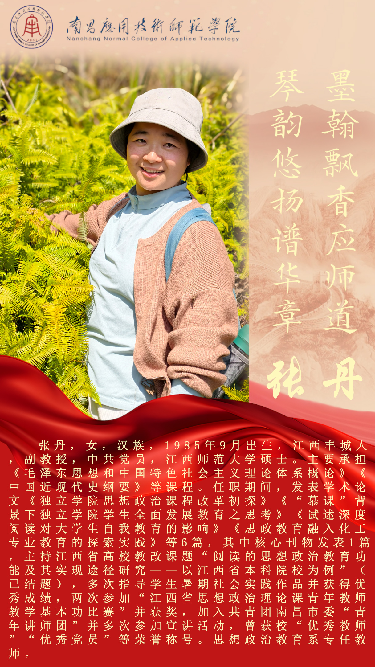 先进典型 优秀毕业生 优秀在校生 优秀教职工 您现在的位置是:首页 > 先进典型 > 优秀教职工 张丹 副教授 综合办2025-04-021941 上一篇 桂光泽 教授 下一篇 敬业育人 默默奉献|优秀教师刘德彰