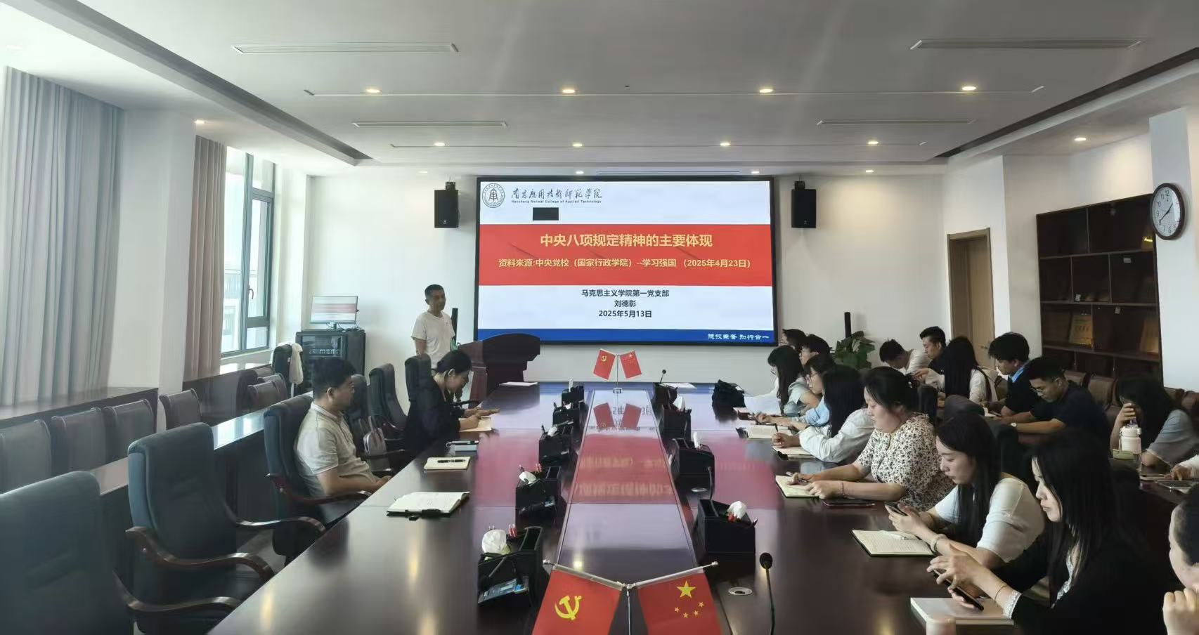 为深入学习贯彻习近平总书记关于党的作风建设的重要论述,进一步强化党员纪律意识。5月13日,澳门十大电子正规游戏网站第一党支部在沁苑七实506会议室开展“深入贯彻中央八项规定精神学习教育”专题党课,由支部书记刘德彰进行授课,全体党员参加。