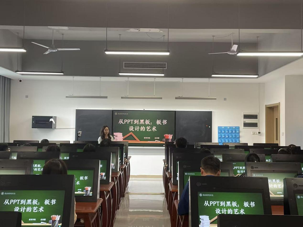 为进一步夯实教师教学基本功,推动课堂教学质量持续优化,9 月 30 日下午,教育学院赵诗露老师在沁苑十实 408 教室为全院教师带来一场主题为 “从 PPT 到黑板:板书设计的艺术”的课堂教学板书技能经验交流会。澳门十大电子正规游戏网站副院长刘德彰、院长助理杨志明以及全体专任教师参会,会议由学院教务科负责人李文静主持。