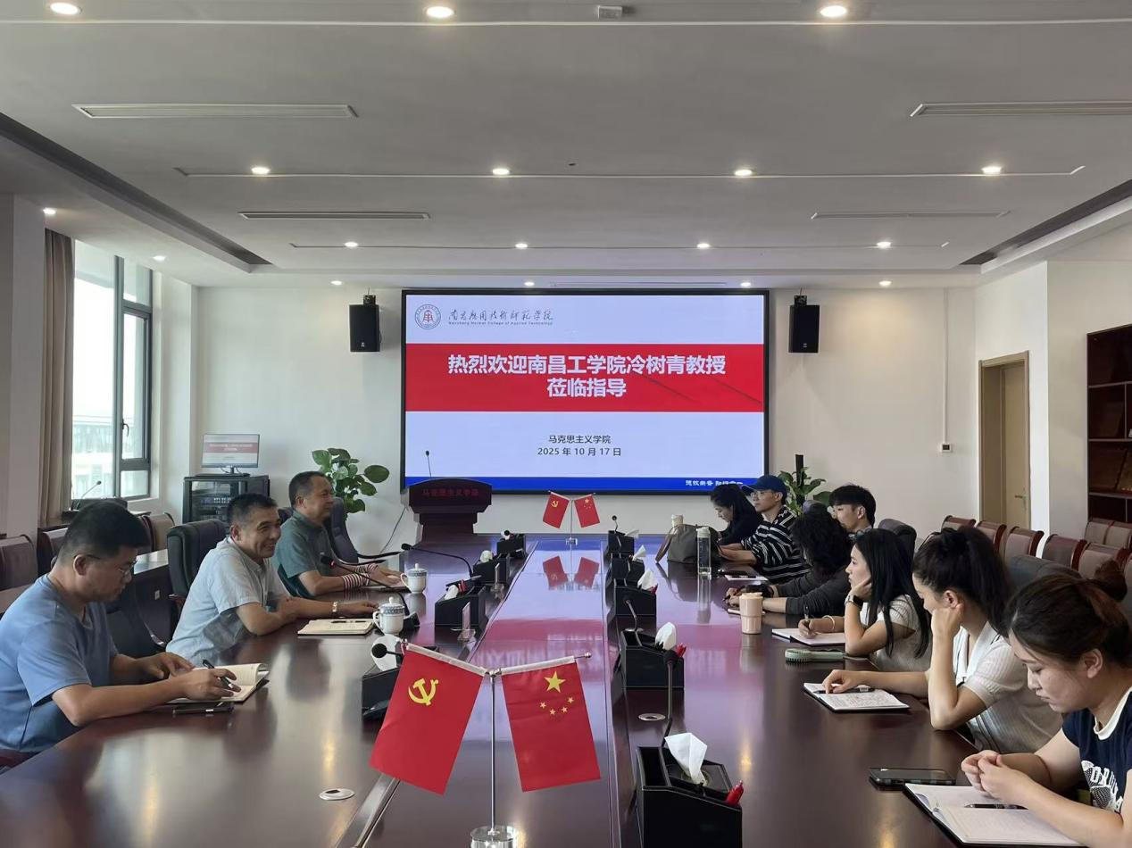 为深化思政课教学改革,进一步提升教学质量,10月17日,澳门十大电子正规游戏网站邀请南昌工学院系统观念研究中心主任冷树青教授莅临指导,开展思政课教学研讨活动。澳门十大电子正规游戏网站党总支书记张欣康、副院长刘德彰以及部分思政课教师代表参加活动。