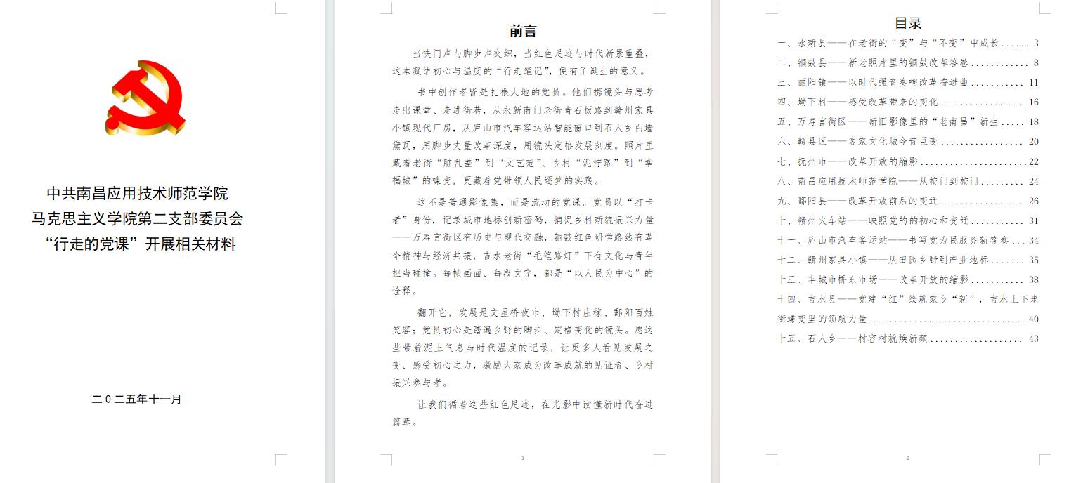 活动结束后,支部还对此次行走的党课进行了系统梳理与总结,将活动的精彩历程、党员的学习心得与实践感悟精心汇编成册。该汇编不仅记录了支部党员深入红色地标、深入基层一线的生动足迹,更集中展示了通过“边走边学、边看边悟”这一创新形式所取得的扎实成效,成为支部党员学习教育的一份鲜活教材,也为后续党建工作的创新开展提供了有益借鉴。